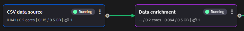 You should see the arrow between the “CSV Data source” deployment and the “Data enrichment” service turn green.