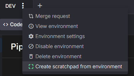 - Create from Environment: Use the dropdown menu in the environment list to start creating a scratchpad.