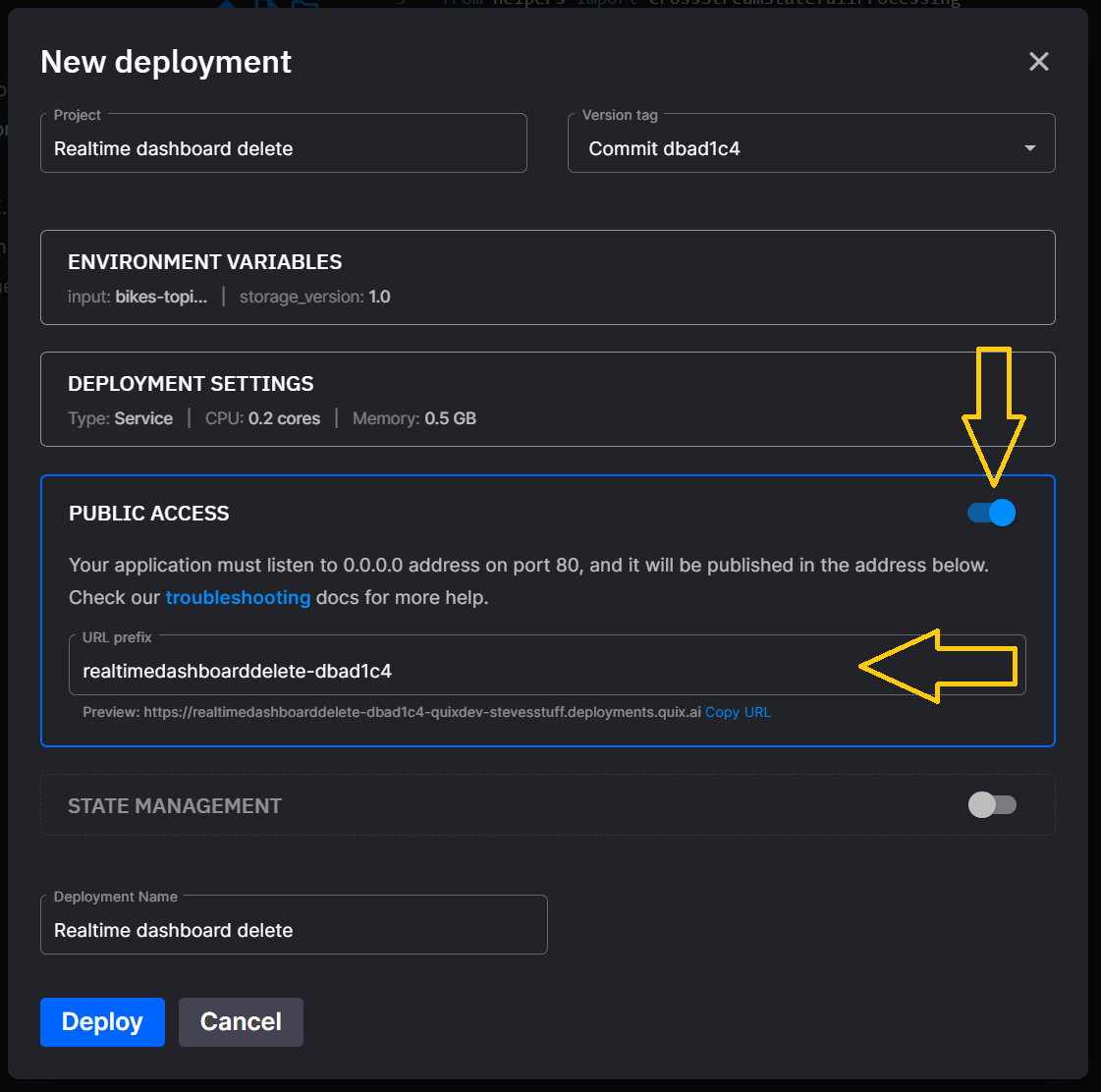 Quix enables you to deploy public-facing web pages and APIs.
