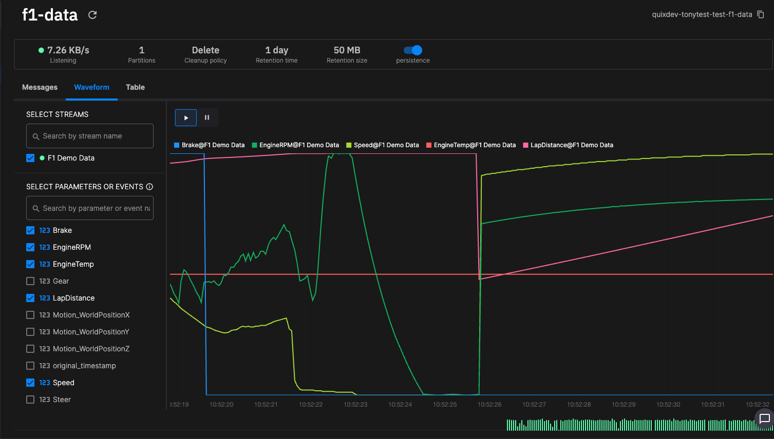 Data ingestion: Telemetry data from the car's sensors is streamed in real time to the team's data processing infrastructure based on Quix. Read the data integration documentation.